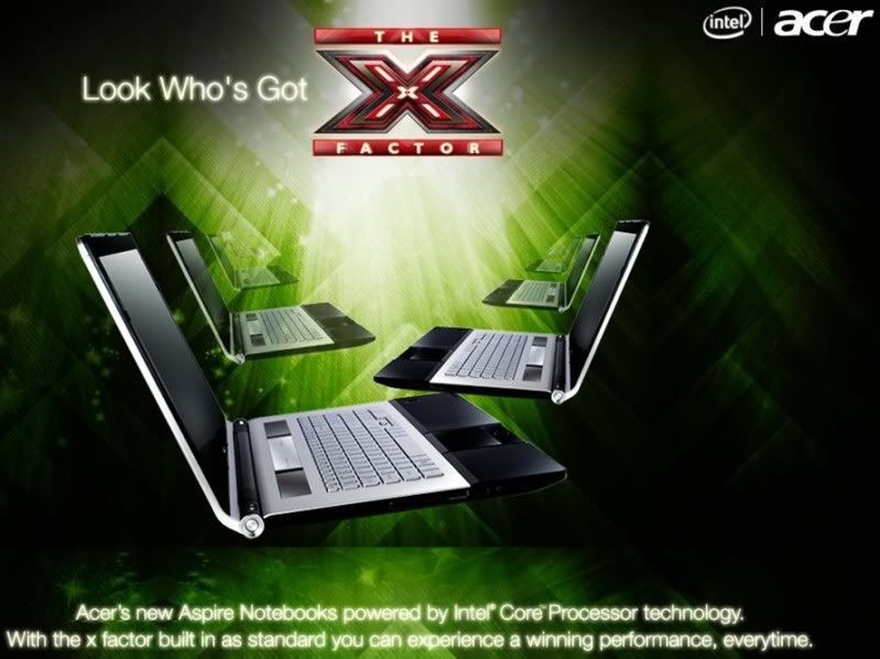 Acer Aspire Notebooks featuring Intel® Core⢠2010 processors are giving away the ultimate X Factor experience where you and a friend will be flown to watch The X Factor in the USA. For your chance to win tell us in 25 words or less which Acer Aspire Notebook powered by Intel® Core⢠processor has the x factor and why?