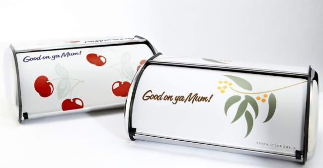 Anna Gare, Masterchef presenter and mother of two, has created a limited edition red cherry retro design on her bread bin, while comedian Fiona O’Loughlin took inspiration from her hometown of Alice Springs to create her design.