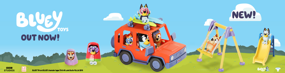 Every parent can relate to the moment Bluey’s dad Bandit wakes up from his peaceful slumber to see two little faces raring to be taken out to the park. With the Mini Playsets of Bluey’s Playground and Bingo’s Playroom, your child can take Bluey on a wagon ride to the playground, move Bingo through her playroom, and make-believe with the claw, tiny book and mini magic xylophone.