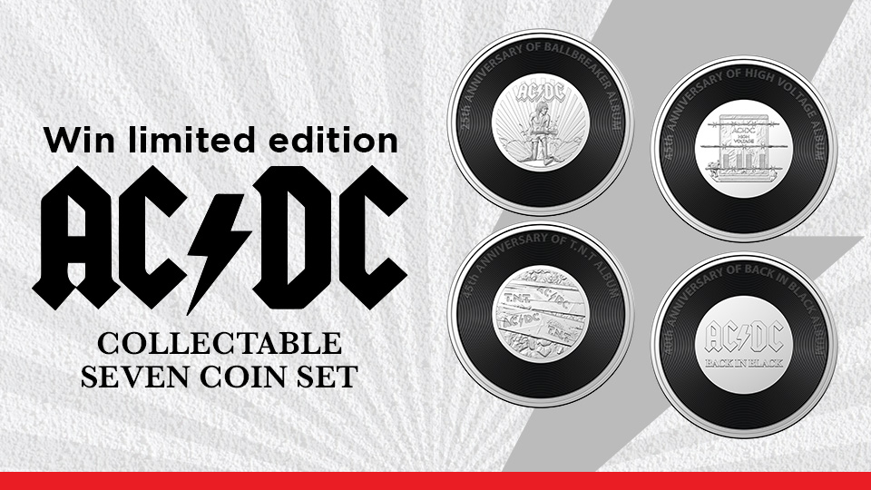 AC/DC always gets the blood pumping and to celebrate 45 years of great music, The Royal Australian Mint is releasing a very special AC/DC Collectable Seven Coin Set. While It’s a Long Way to the Top, here’s a short cut to win one of these limited edition AC/DC collectable sets.