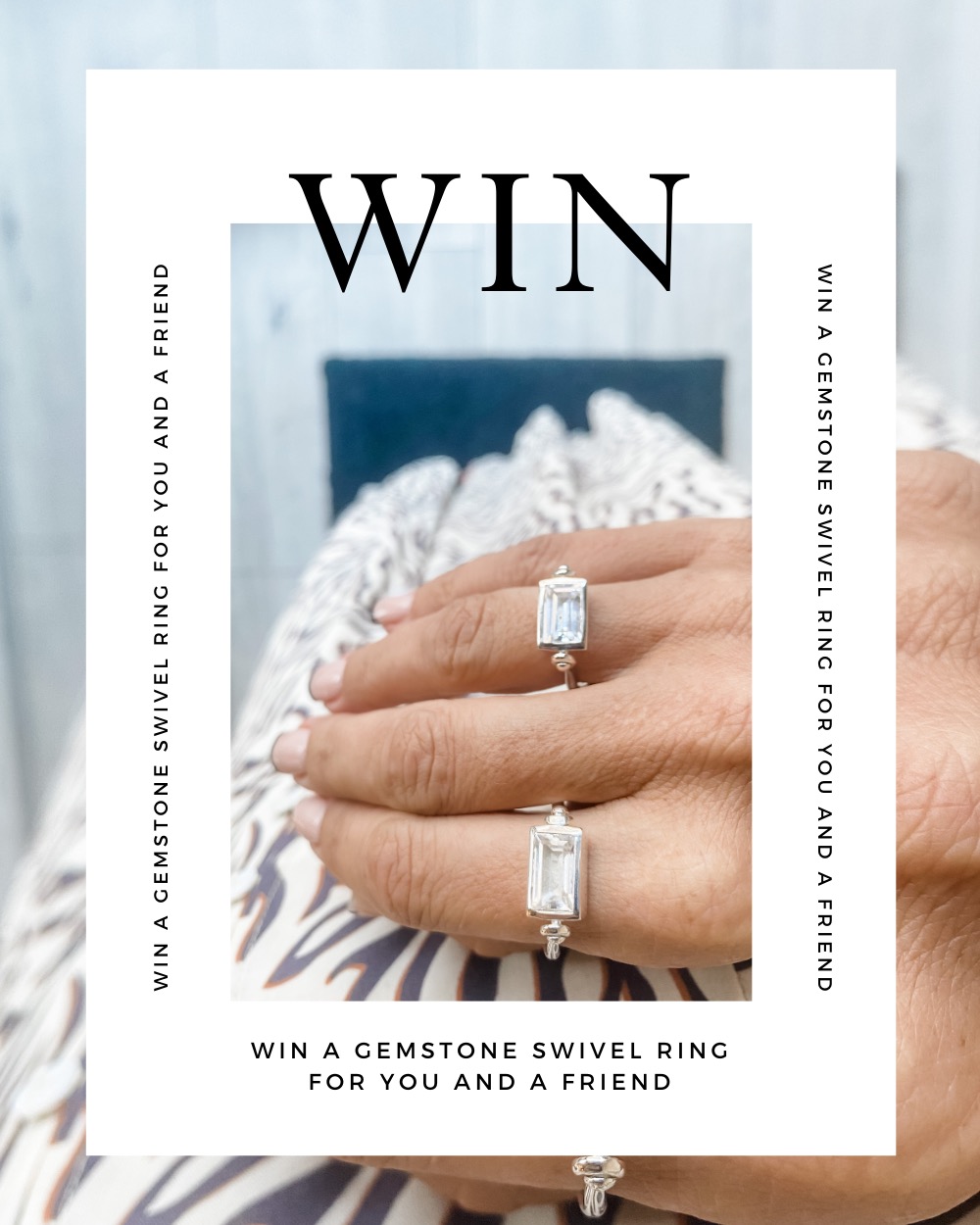 Not one but TWO winning duos will win their choice of any of our Sterling Silver Gemstone Swivel Rings each and have those pieces engraved with YOUR choice of words or dates.
