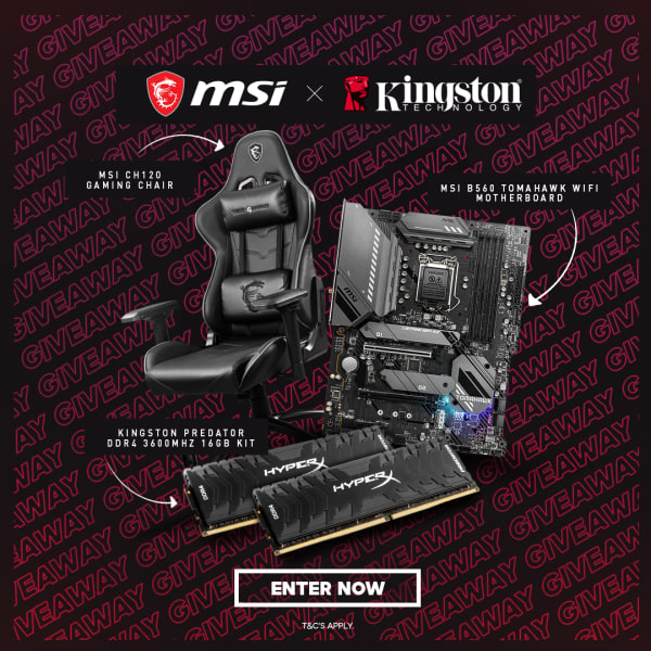 - There will be four (4) winners drawn. One (1) winner will receive one (1) MSI MAG CH120 Gaming Chair (approximate retail value USD209). One (1) winner will receive one (1) MSI MAG B560 TOMAHAWK WIFI Motherboard (approximate retail value USD199). Two (2) winners will receive one (1) Kingston HyperX Predator DDR4 3600MHz 16GB (Kit of two (2)) (approximate retail value USD150).