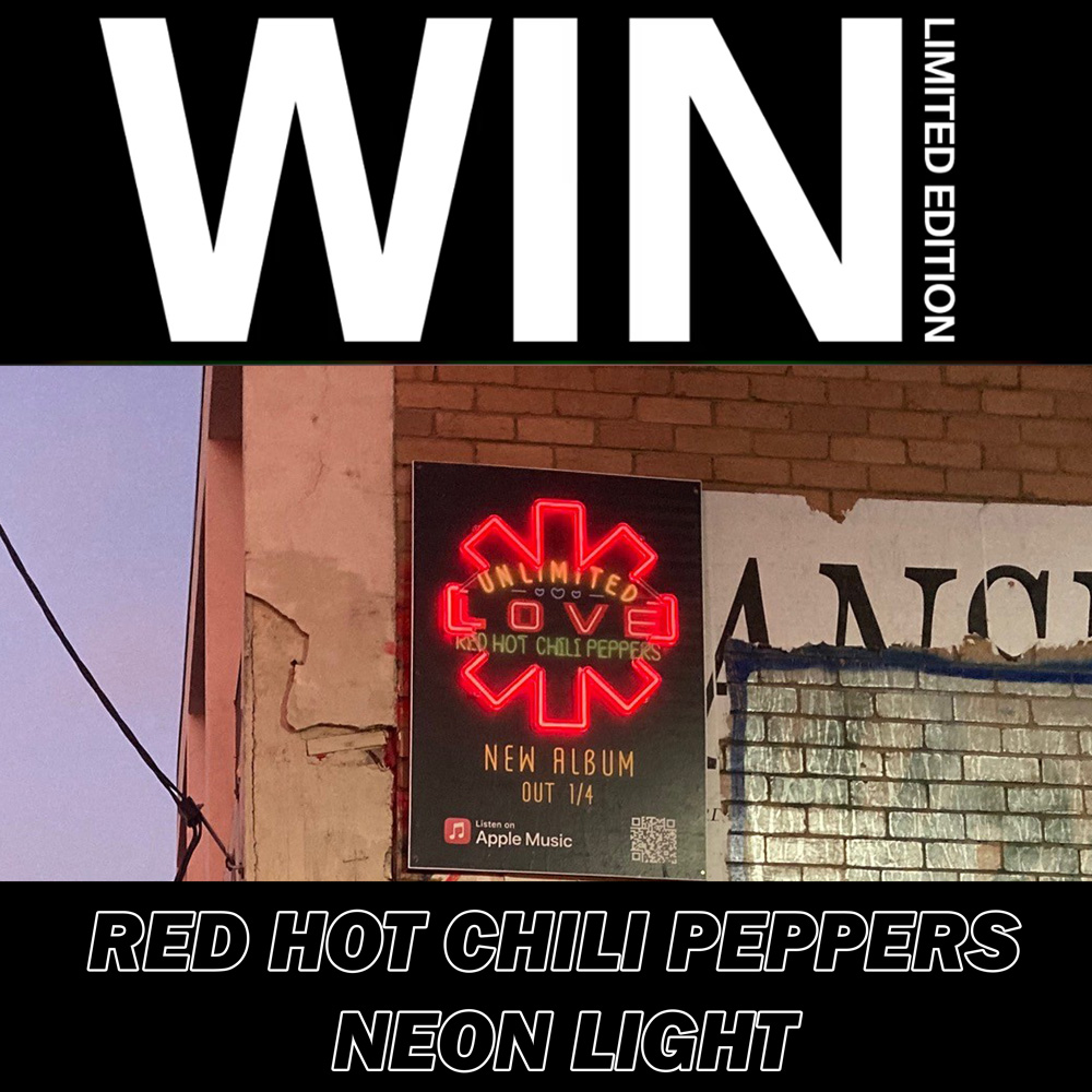 WIN A WORLD EXCLUSIVE RED HOT CHILI PEPPERS NEON LIGHTSave Unlimited Love on Spotify or Apple Music for a chance to win an exclusive Red Hot Chili Peppers neon light poster valued at $450!
