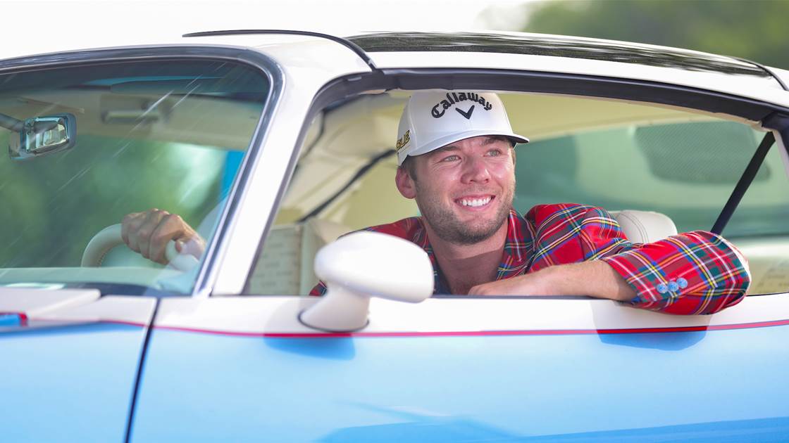 Sam Burns prepared to take his new wheels for a spin, his new tartan jacket no less. Send us your caption to go with this image and you could win.