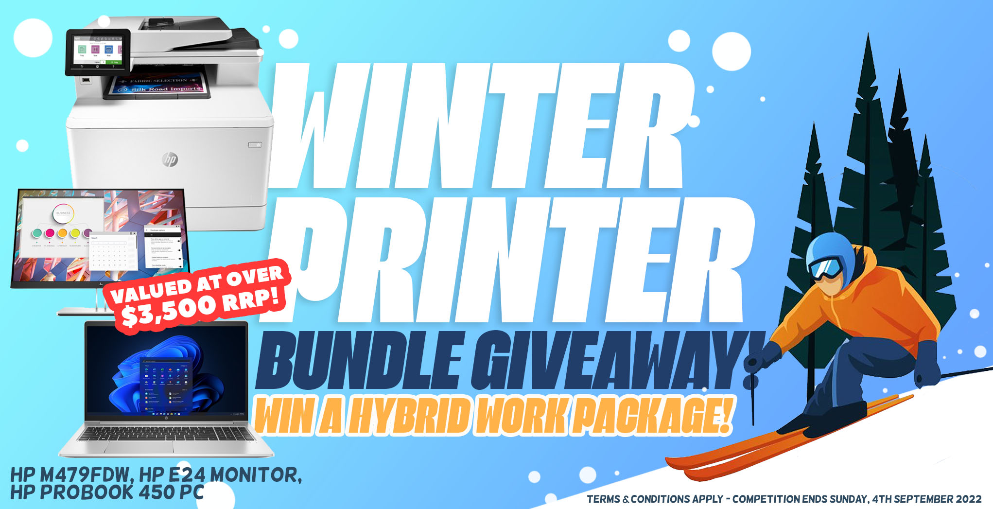 Winter's not over yet and what better way to bring the heat this season than to WIN a HP Hybrid Work Package courtesy of both MediaForm & HP! The package is valued at over $3,500 RRP and includes a HP A4 colour multifunction printer, a HP laptop and a HP 23.8" monitor.