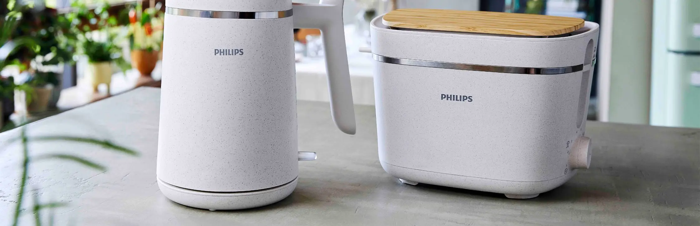 Enjoy your breakfast with elegant style and impeccable performance. Sustainably designed with 100% Bio-based plastics* and energy-efficient features for the small step to a greener future comes Philips' Eco Collection.