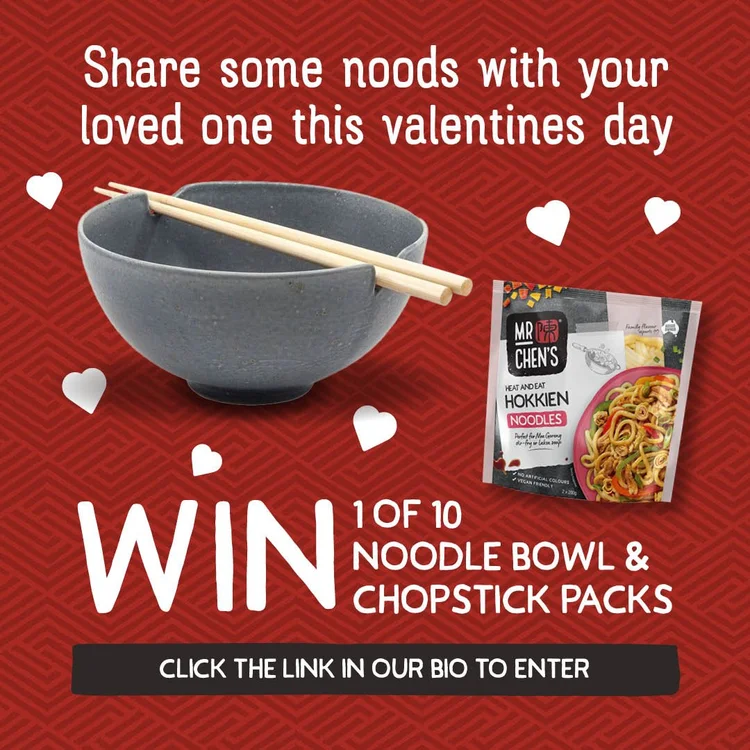 Competition closes 11:59pm Sunday 19th February. Prize pack includes 2 pack Noodle Bowl and Chopsticks and 2 packs of Hokkien Noodles.