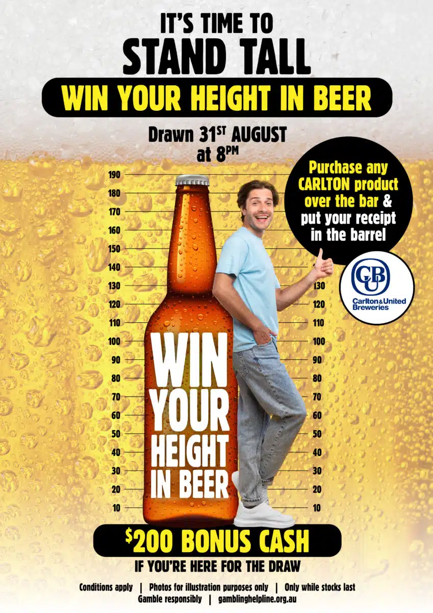 Topic: Diggers Services Club Qld - Win your height in beer/Purch Req/Closes 31/8 (Read 197 times) (Replies 0 posts)