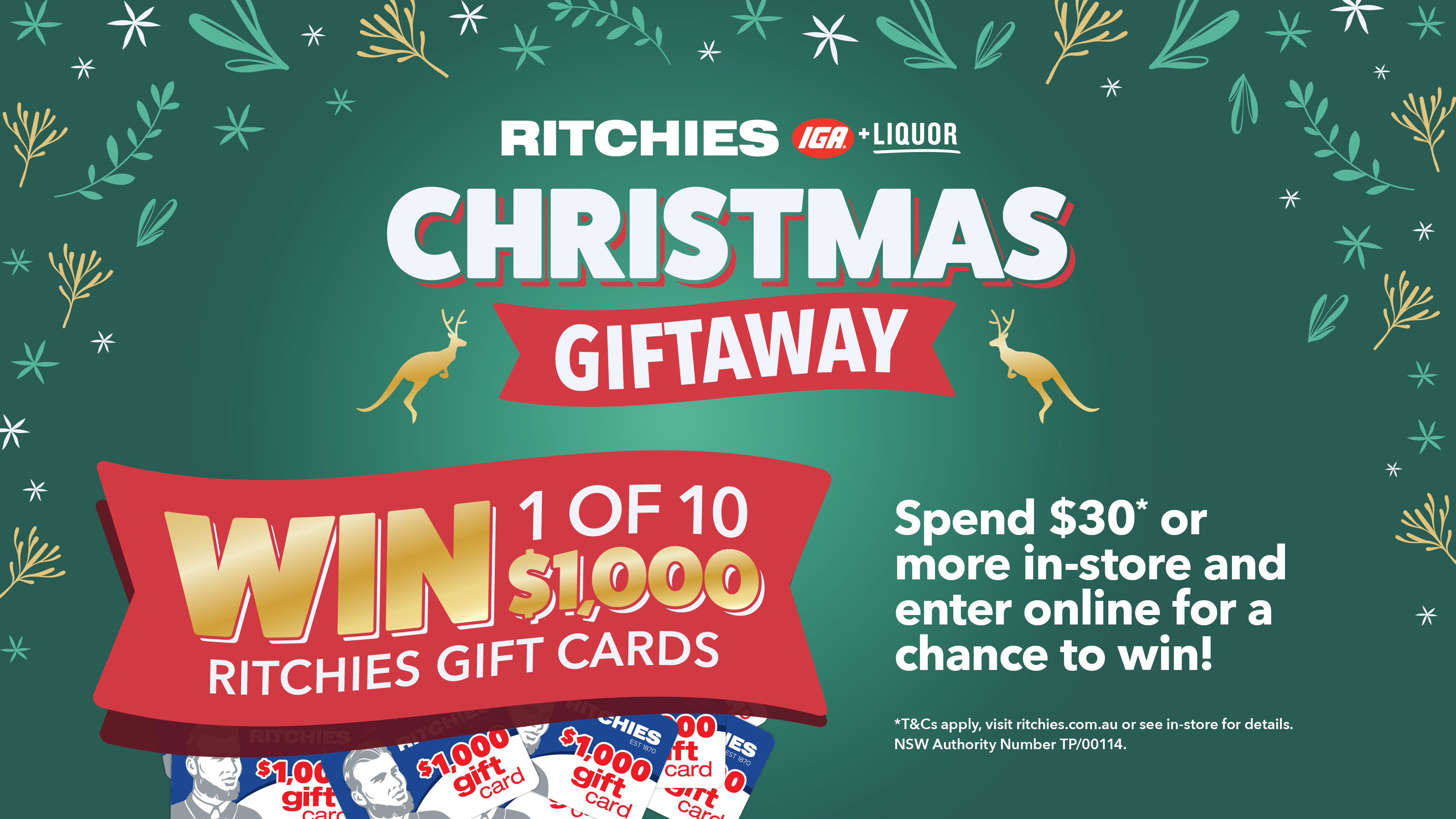 Winners will be published to https://ritchies.com.au/christmas within 5 business days of the draw. Prize will be made available for collection at the winners nearest Ritchies Supermarket.