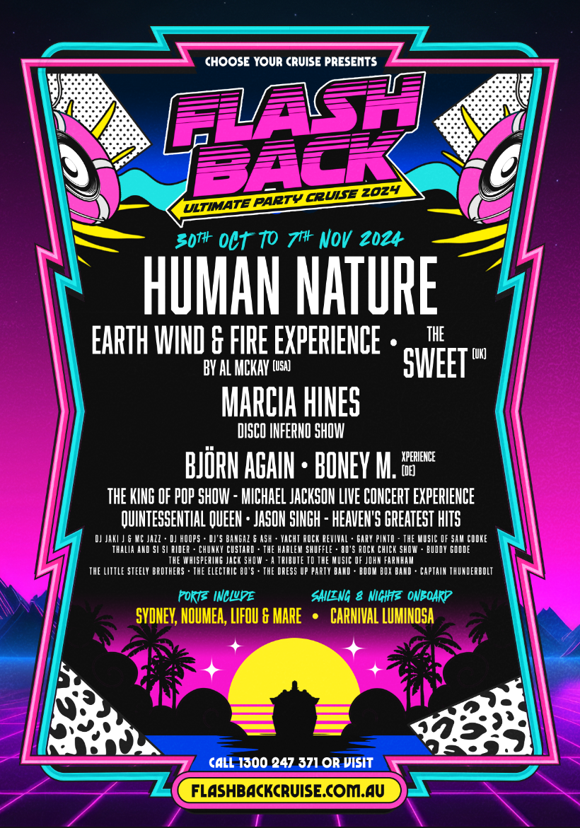 Flashback Cruise 2024. Cruising the South Pacific with Marcia Hines, The Sweet and Bjorn Again!