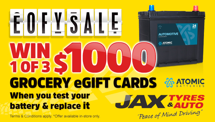 Go into the draw to win 1 of 3 $1000 Grocery eGift Cards when you test your battery and replace it with an Atomic Battery during our EOFY Sale!