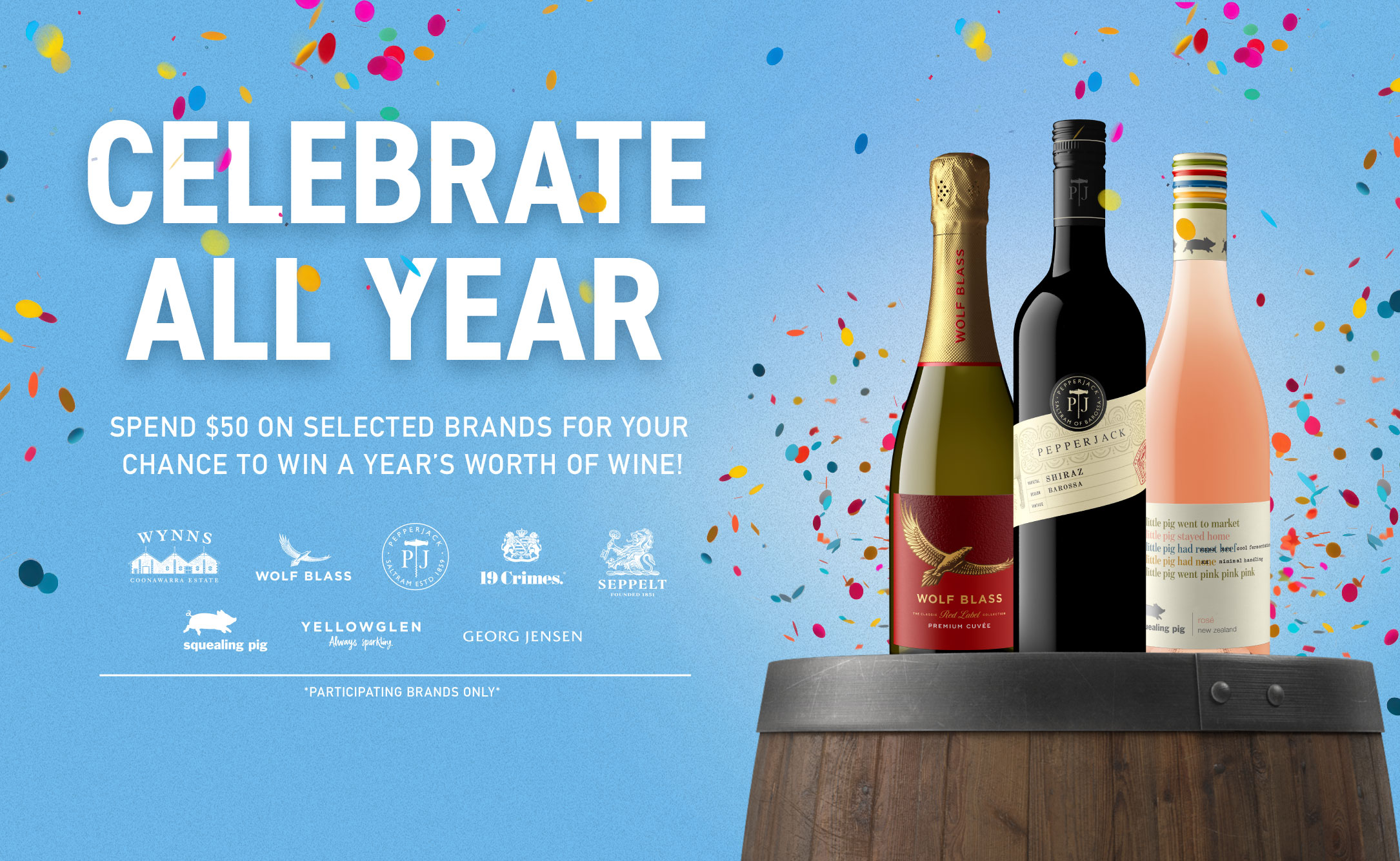 Yes. During the Competition Period, you need to spend $50 or more on participating brands (listed below) in one transaction at a Participating Venue (Qualifying Purchase). Participating brands are; Squealing Pig, Pepperjack, Wynns, Wolf Blass, 19 Crimes, Seppelt, Yellowglen, Georg Jensen 750ml.