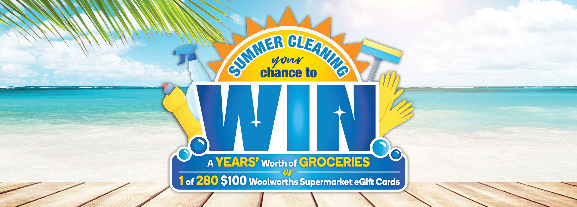 Shake out the curtains and dust off the windowsills — the sun’s shining on your chance to win a year’s worth of groceries or a $100 Woolworths Supermarket eGift Card.