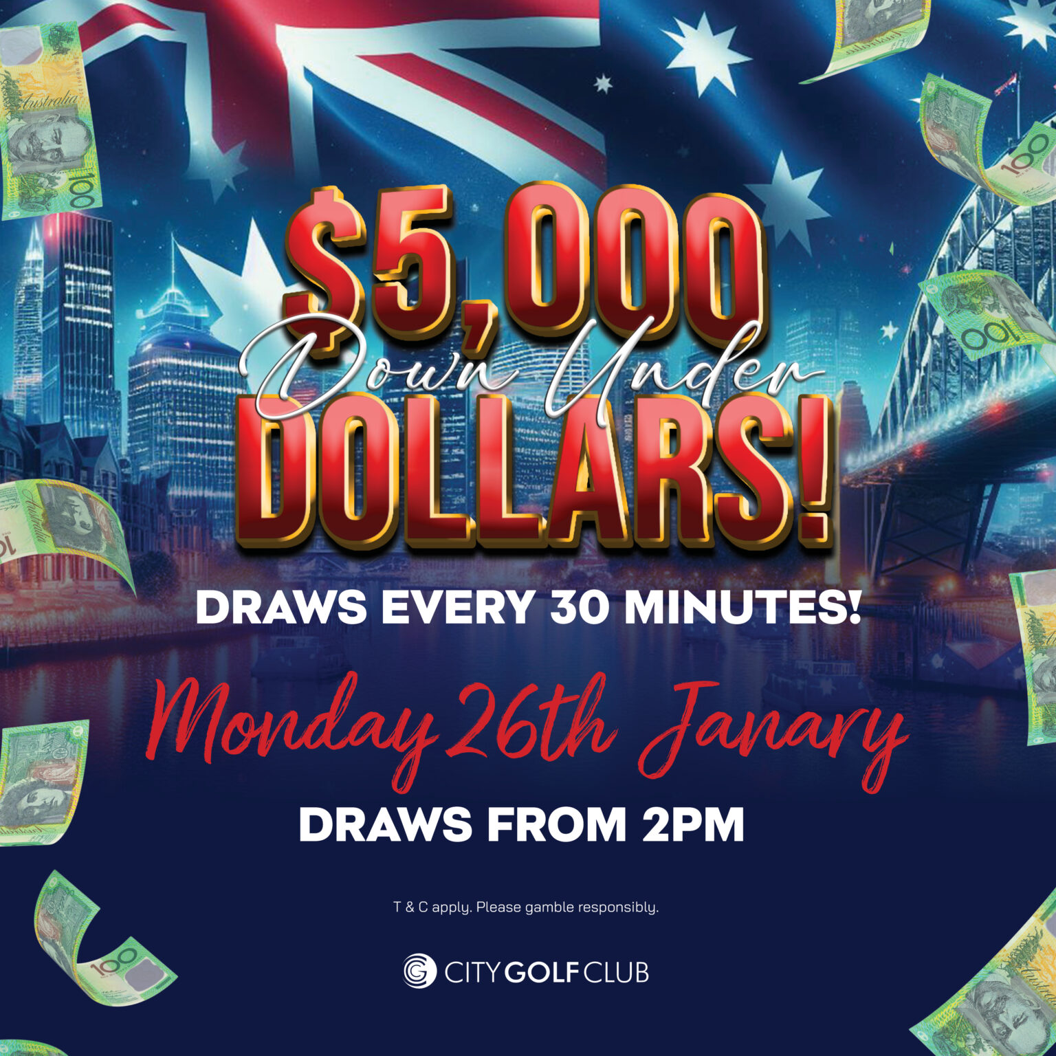 Topic: City Golf Club Toowoomba - Share $5000 Cash 26/1/26/Down Under Dollars/Earn (Read 76 times) (Replies 0 posts)