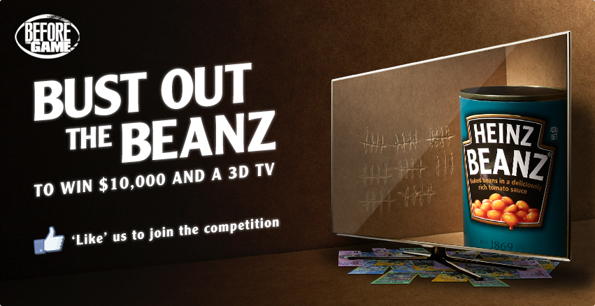 https://www.facebook.com/heinzbeanzaustralia). Entrants agree to the disclosure of their personal details (name and suburb) and the use of their photographs in the manner discussed above. The Entrant fully releases Heinz, Before the Game and Network Ten from and against any claims, demands and liability whatsoever in connection with such disclosure or use of the photographs by the above entities.