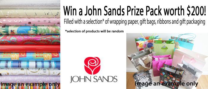 To celebrate our love of gift wrapping and decorating with John Sands Papers, Gift Bags and Ribbons, John Sands is joining in with our launch celebrations with a $200 John Sands Prize Pack!Simply follow the instructions in the Rafflecopter form below and you will be in to win!