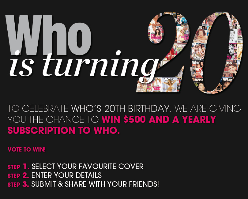 Don't forget to vote for your favourite WHO cover from the past 20 years for your chance to win $500 and a 12-month WHO subscription!