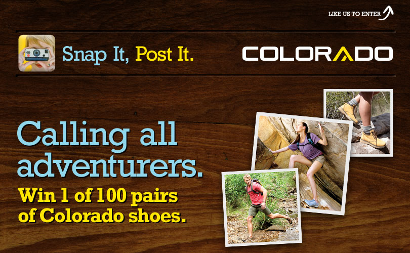 Simply upload a photo and exciting caption relating to one of your adventures and if we choose it, you will receive a FREE pair of Colorado shoes.