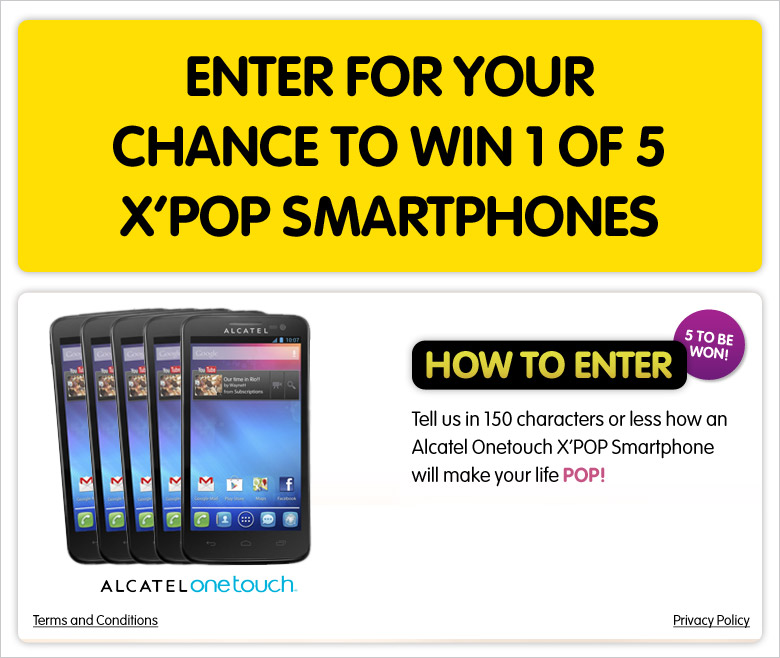 15. The 5 most creative valid entries as determined by the judges pursuant to clause 13 of these Terms and Conditions, will win 1 of 5 ALCATEL One Touch X’POP Smartphone’s.