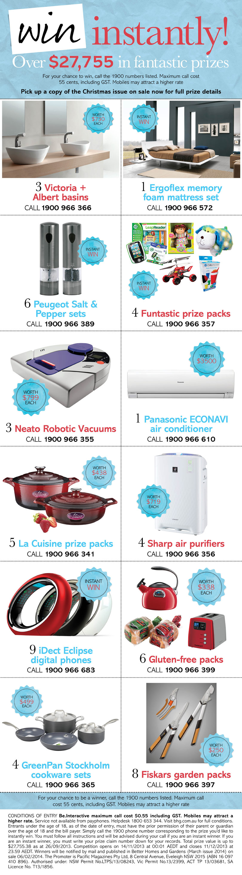 Various Xmas prizes BHG mag Closing Date: Wednesday 11 December 2013