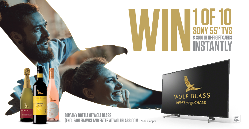 https://www.wolfblass.com/en-au/septemberpromotion & fill out entry form incl. receipt upload to see if you provisionally win instant prize & to enter major draw. Max 6 outlet entries per person per day & max 1 entry per receipt. Max 1 venue entry per person per day. Keep original itemised receipt/s. Major draw: 10am (AEDT) 12/10/20, L8, 161 Collins St, Melb 3000. 49 instant win prizes (1 per day): $100 JB Hi-Fi Gift Card. 10 major prizes: 55" X70G LED 4K Ultra HD High Dynamic Range Smart TV ($995 ea). Total prize pool $14,850. See website on 14/10/20 for major winners. Opt in to get future marketing from Promoter. See website for full conditions inc. privacy statement. Promoter: Treasury Wine Estates Australia Limited, ABN 78 145 321 320, Level 8, 161 Collins St Melbourne VIC 3000. Permits: ACT TP 20/00829, SA T20/728, NSW LTPS/20/44234