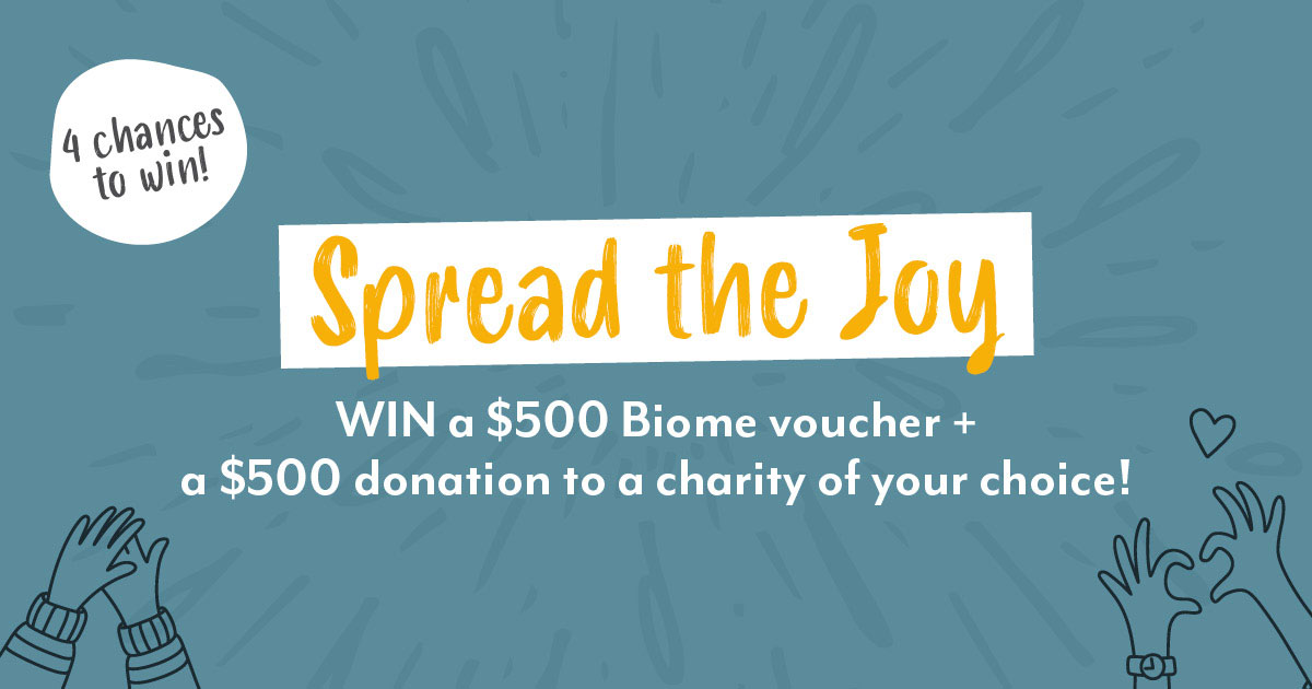 We are giving you four chances to WIN a $500 Biome voucher plus a $500 donation to a registered charity of your choice.