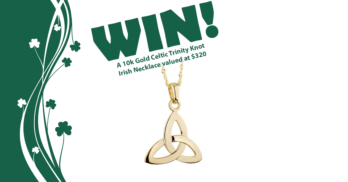 https://www.irishshop.com/irish-necklace-10k-gold-small-trinity-knot-pendant.html Terms and conditions may apply. Incidental expenses and all other costs and expenses which are not specifically listed as part of a prize in these Official Rules and which may be associated with the award, acceptance, receipt and use of all or any portion of the awarded prize are solely the responsibility of the respective prize winner. ALL FEDERAL, STATE AND LOCAL TAXES ASSOCIATED WITH THE RECEIPT OR USE OF ANY PRIZE IS SOLELY THE RESPONSIBILITY OF THE WINNER. ADDITIONAL LIMITATIONS Prize is non-transferable. No substitution or cash equivalent of prizes is permitted. Sponsor and its respective parent, affiliate and subsidiary companies, agents, and representatives are not responsible for any typographical or other errors in the offer or administration of the Sweepstakes, including, but not limited to, errors in any printing or posting or these Official Rules, the selection and announcement of any winner, or the distribution of any prize. Any attempt to damage the content or operation of this Sweepstakes is unlawful and subject to possible legal action by Sponsor. Sponsor reserves the right to terminate, suspend or amend the Sweepstakes, without notice, and for any reason, including, without limitation, if Sponsor determines that the Sweepstakes cannot be conducted as planned or should a virus, bug, tampering or unauthorized intervention, technical failure or other cause beyond Sponsor’s control corrupt the administration, security, fairness, integrity or proper play of the Sweepstakes. In the event any tampering or unauthorized intervention may have occurred, Sponsor reserves the right to void suspect entries at issue. Sponsor and its respective parent, affiliate and subsidiary companies, agents, and representatives, and any telephone network or service providers, are not responsible for incorrect or inaccurate transcription of entry information, or for any human error, technical malfunction, lost or delayed data transmission, omission, interruption, deletion, line failure or malfunction of any telephone network, computer equipment or software, the inability to access any website or online service or any other error, human or otherwise. INDEMNIFICATION AND LIMITATION OF LIABILITY BY ENTERING THE SWEEPSTAKES, EACH ENTRANT AGREES TO INDEMNIFY, RELEASE AND HOLD HARMLESS SPONSOR AND ITS PARENT, AFFILIATE AND SUBSIDIARY COMPANIES, THE FACEBOOK PLATFORM, ADMINISTRATOR, ADVERTISING AND PROMOTIONAL AGENCIES, AND ALL THEIR RESPECTIVE OFFICERS, DIRECTORS, EMPLOYEES, REPRESENTATIVES AND AGENTS FROM ANY LIABILITY, DAMAGES, LOSSES OR INJURY RESULTING IN WHOLE OR IN PART, DIRECTLY OR INDIRECTLY, FROM THAT ENTRANT’S PARTICIPATION IN THE SWEEPSTAKES AND THE ACCEPTANCE, USE OR MISUSE OF ANY PRIZE THAT MAY BE WON. SPONSOR AND ITS PARENT, AFFILIATE AND SUBSIDIARY COMPANIES DO NOT MAKE ANY WARRANTIES, EXPRESS OR IMPLIED, AS TO THE CONDITION, FITNESS OR MERCHANTABILITY OF THE PRIZE. SPONSOR AND ITS PARENTS, SUBSIDIARIES, AFFILIATES, ADVERTISING AND PROMOTIONAL AGENCIES, AND ALL THEIR RESPECTIVE OFFICERS, DIRECTORS, EMPLOYEES, REPRESENTATIVES AND AGENTS DISCLAIM ANY LIABILITY FOR DAMAGE TO ANY COMPUTER SYSTEM RESULTING FROM ACCESS TO OR THE DOWNLOAD OF INFORMATION OR MATERIALS CONNECTED WITH THE SWEEPSTAKES. Further queries to IrishShop.com