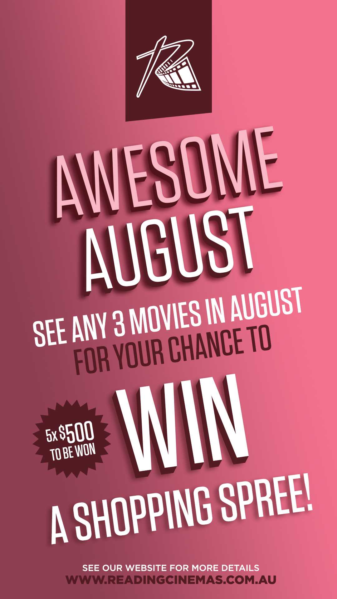 • $500 cash Reading Cinemas     Closing Date: Wednesday 31 August 2022