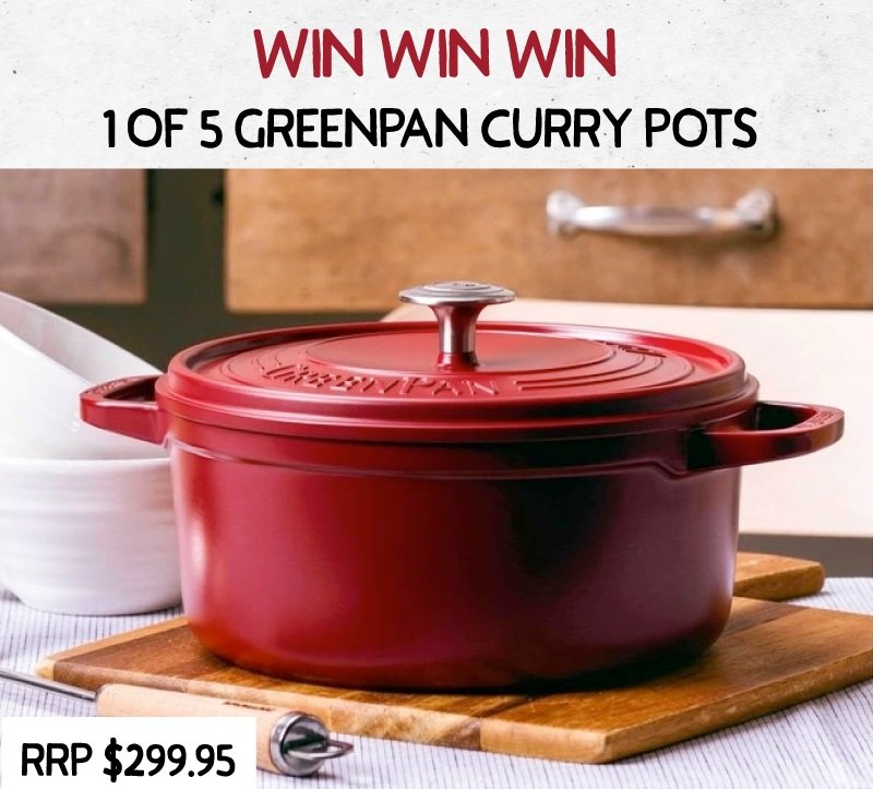 Love to cook up a curry? Go in the draw to win a Greenpan Curry Pot valued at $299.95 filled with our NEW Thai Red and Green Curry Paste, Coconut Milk and Coconut Cream.