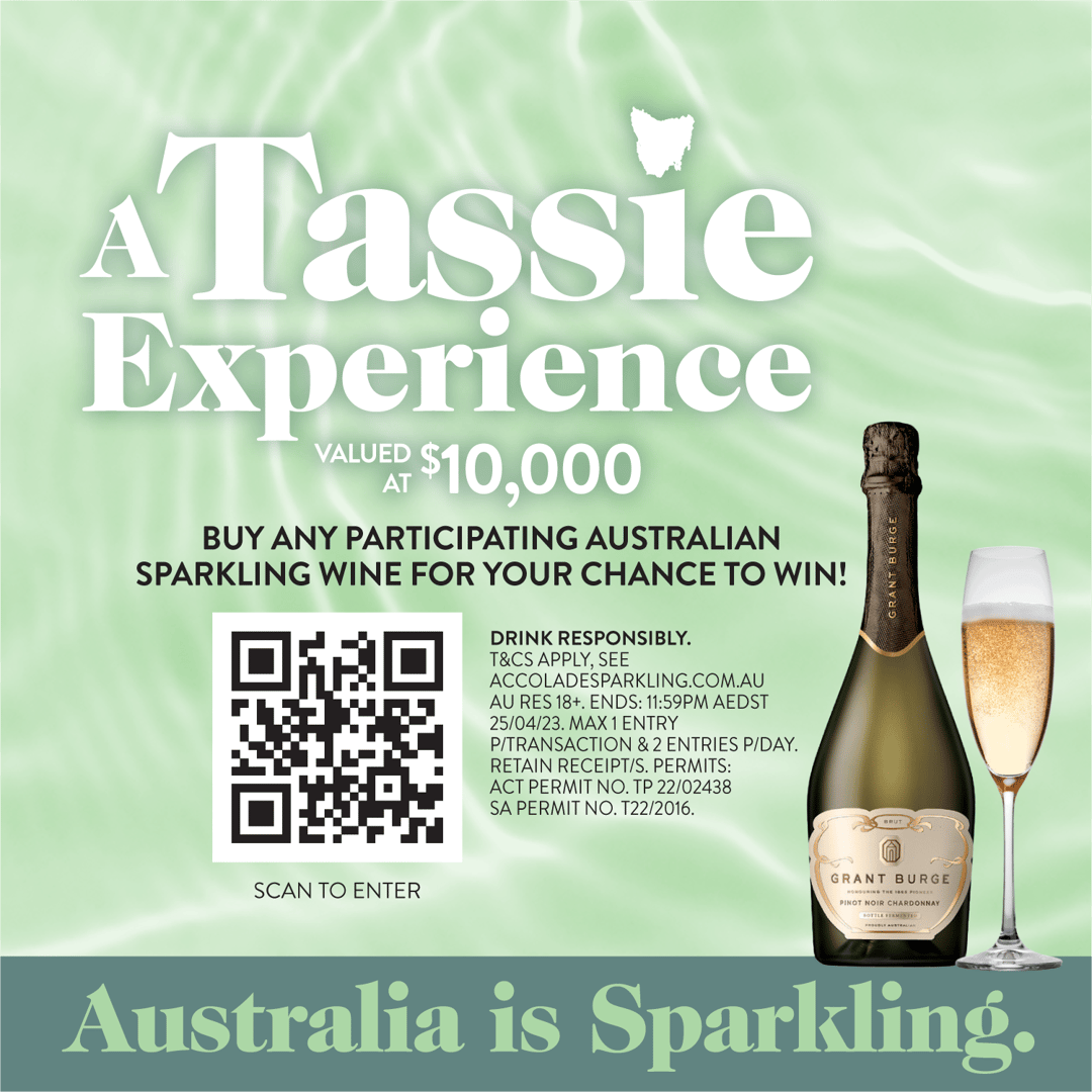 Win a Tassie experience valued at $10k. Buy any participating Grant Burge, Arras or Croser Australian wine for your chance to win!