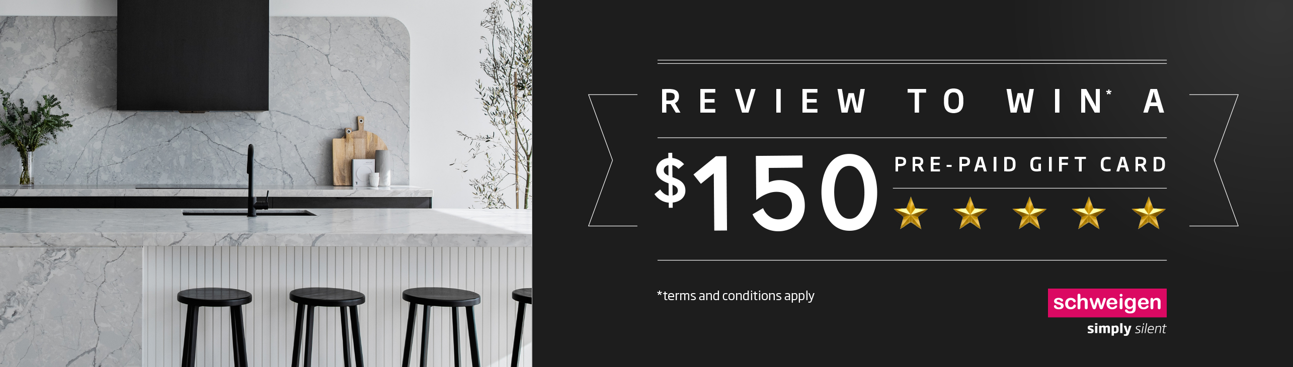 Share your thoughts on Schweigen products - and you will not only help others find the best to suit their homes, but you could also win yourself a $150 prepaid gift card! One lucky winner picked every month from August 2022 to July 2023. Terms and conditions apply.