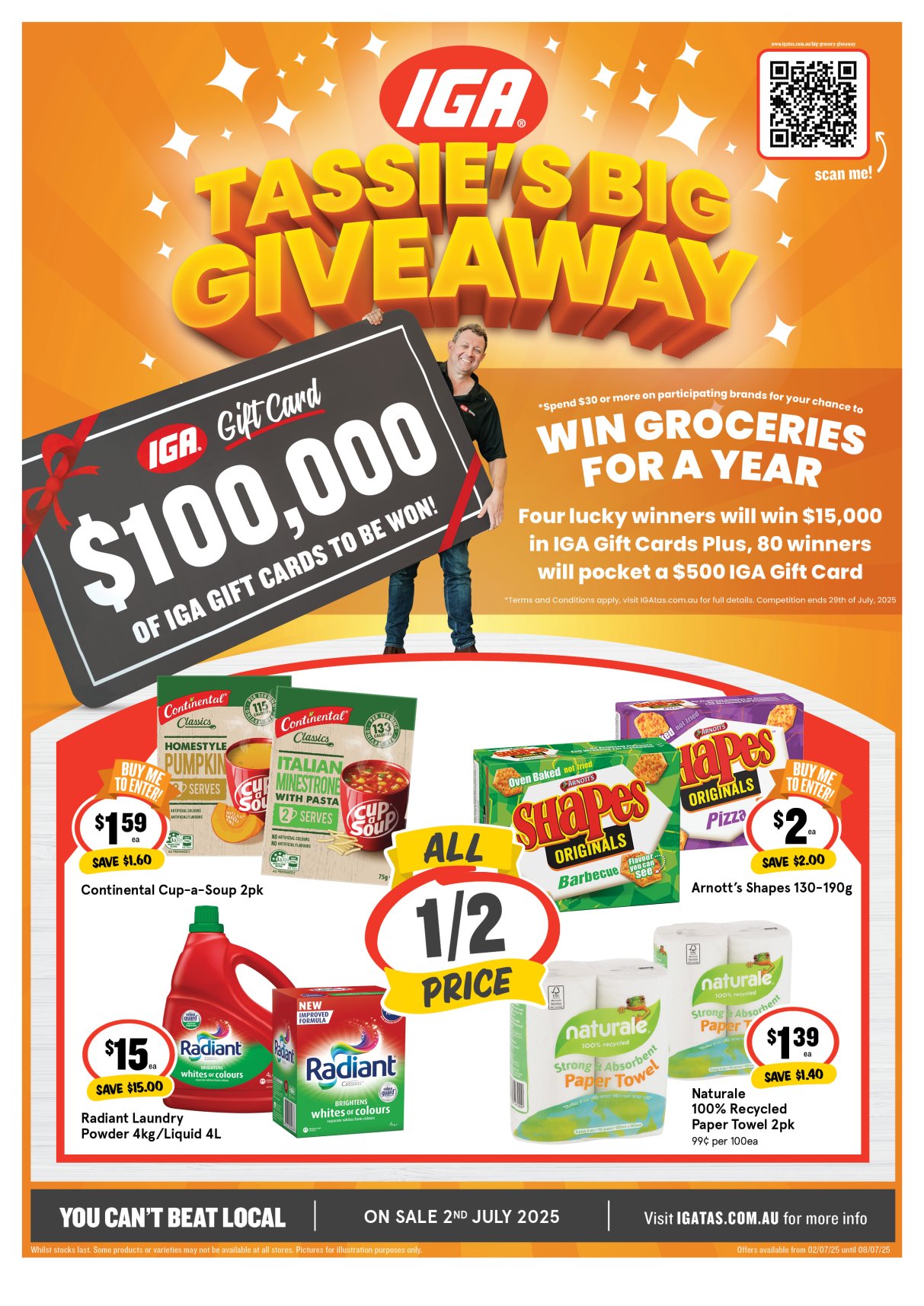 • IGA Grocery's for a year     Closing Date: Tuesday 01 August 2023