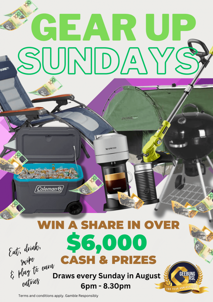 Topic: Geebung RSL - Win share $6000 Cash & Prizes Sundays in August/Earn/Comm 6/8 (Read 114 times) (Replies 0 posts)