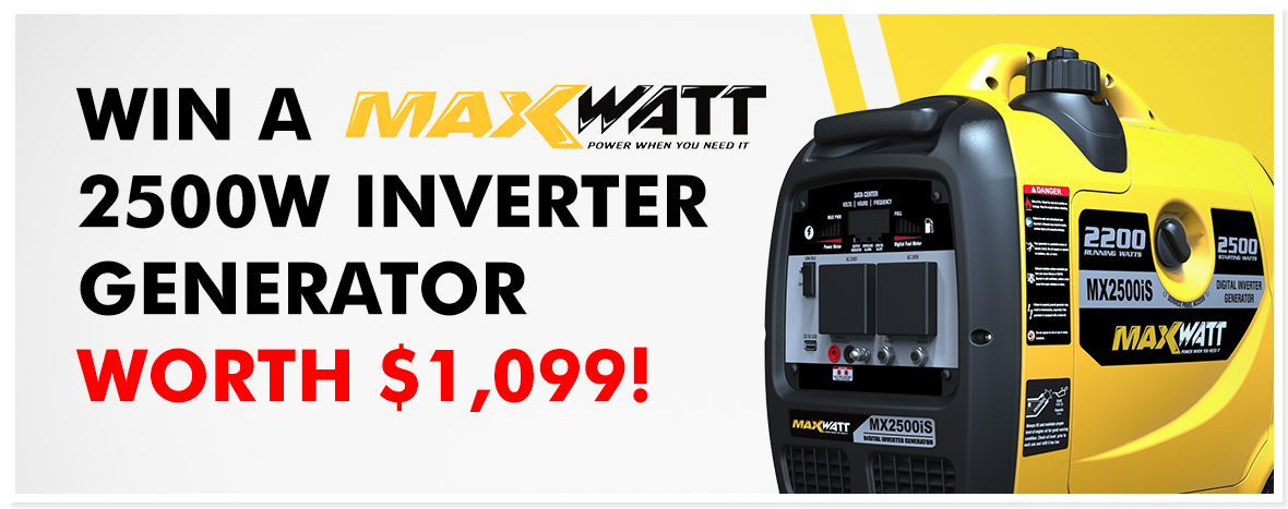 DETAILS: Competition closes Monday 19th February 2024 at 9am AEST. Winner will be announced Monday 19th February 2024. Australian residents only. The Prize is a Maxwatt 2500W Inverter Generator valued at $1,099. Prizes are not transferable or exchangeable and cannot be taken as cash. Winner will be selected at random and will be contacted via email. The winner is required to confirm name and address by reply via email within 7 days. If the winner fails to confirm his or her address within 7 days, My Generator is not obliged to send the Prize to the Winner and may, in its discretion, select an alternative entry as the winner.