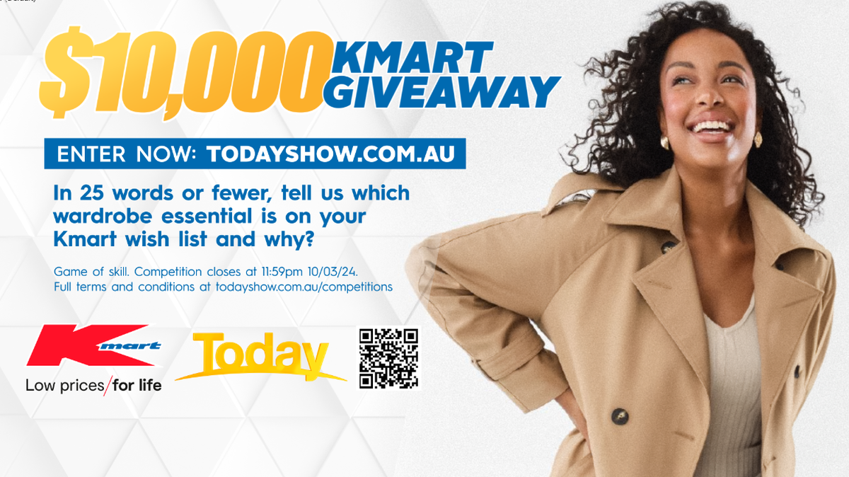 In 25 words or fewer, which wardrobe essential is on your Kmart wish list and why?https://9now.nine.com.au/today/competitions/weekend-today-kmart-giveawayGame of skill.
