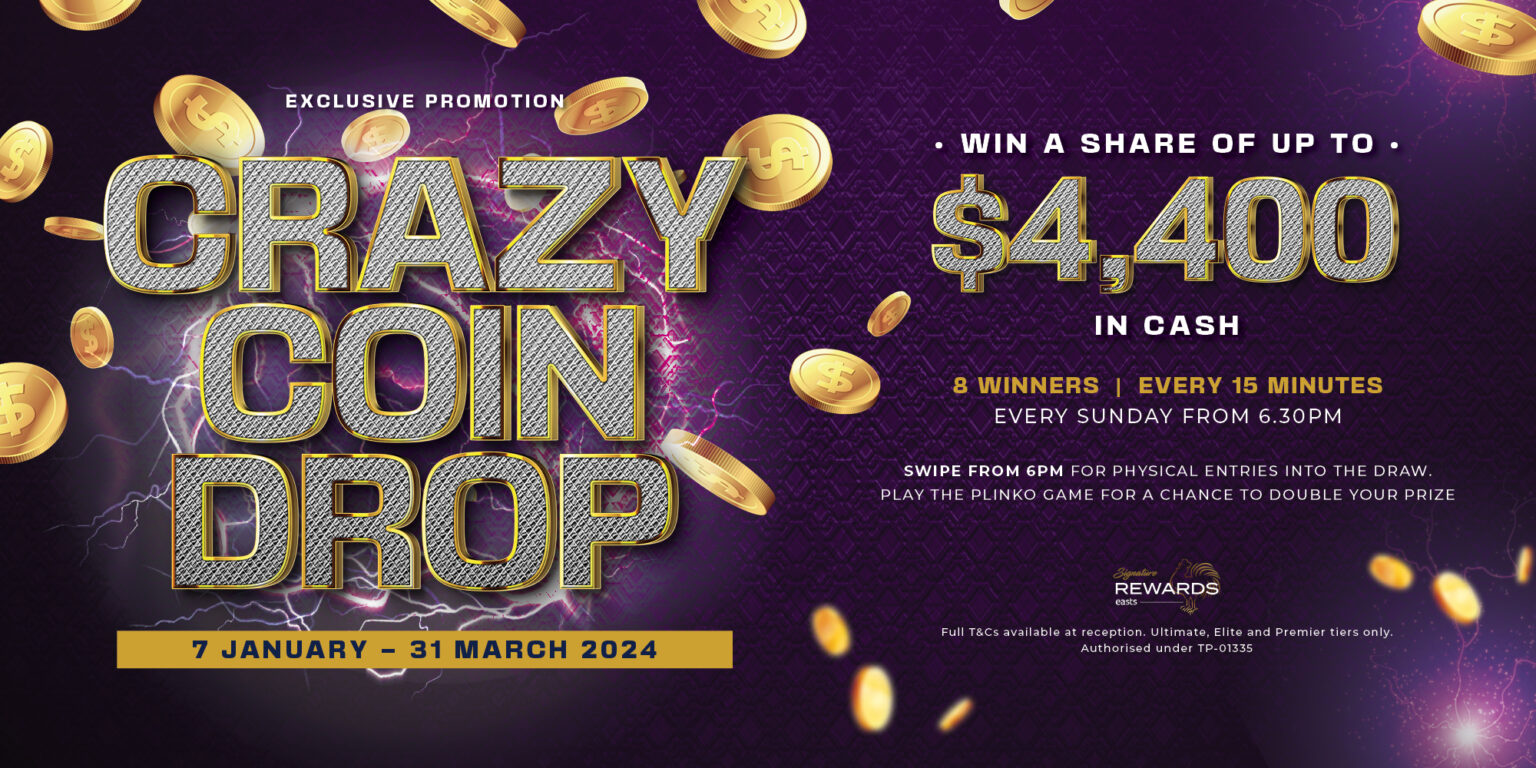 Crazy Coin Drop is our latest exciting promotion to give you the chance to win a share of up $4,400 in cash every Sunday!