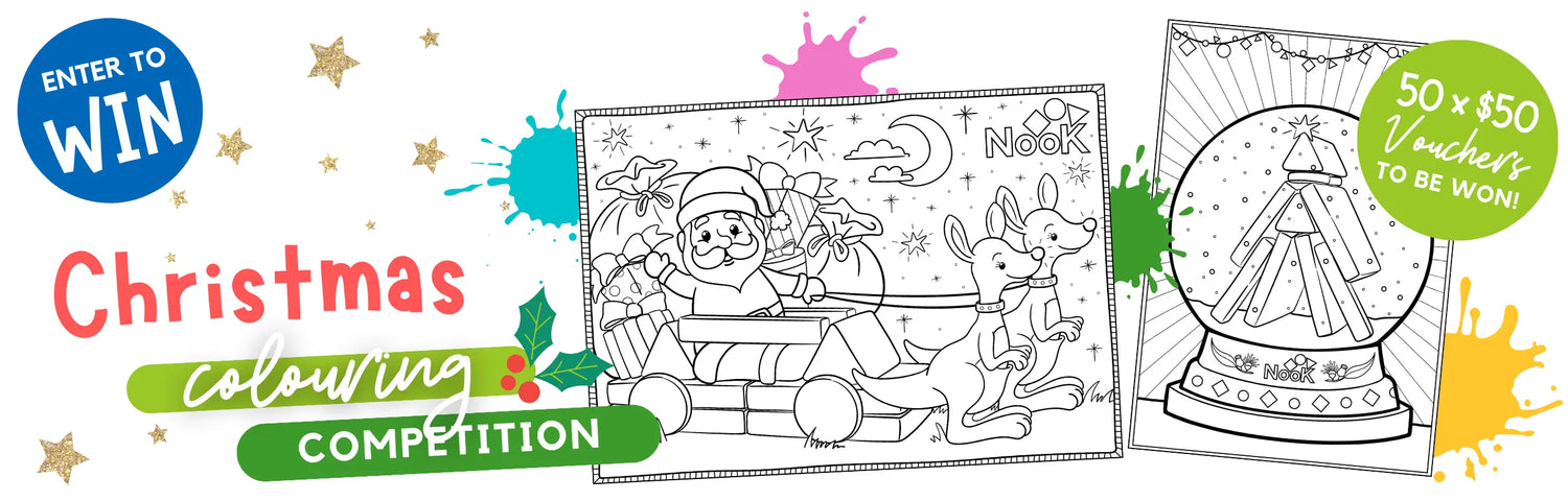 It's hard to believe that we're heading into NooK's 5th Christmas this year, but we're thrilled to see the NooK happiness spreading far and wide again this Christmas! We're celebrating this special milestone with our first EVER NooK Colouring Competition! There are 50 x $50 NooK Gift Vouchers up for grabs as a way of spreading the NooK magic to as many of our biggest (and littlest!) fans as possible. Entries must be received by 30 November 2024 at 5pm AEDT. Winners will be listed here on the 3rd December 2024.