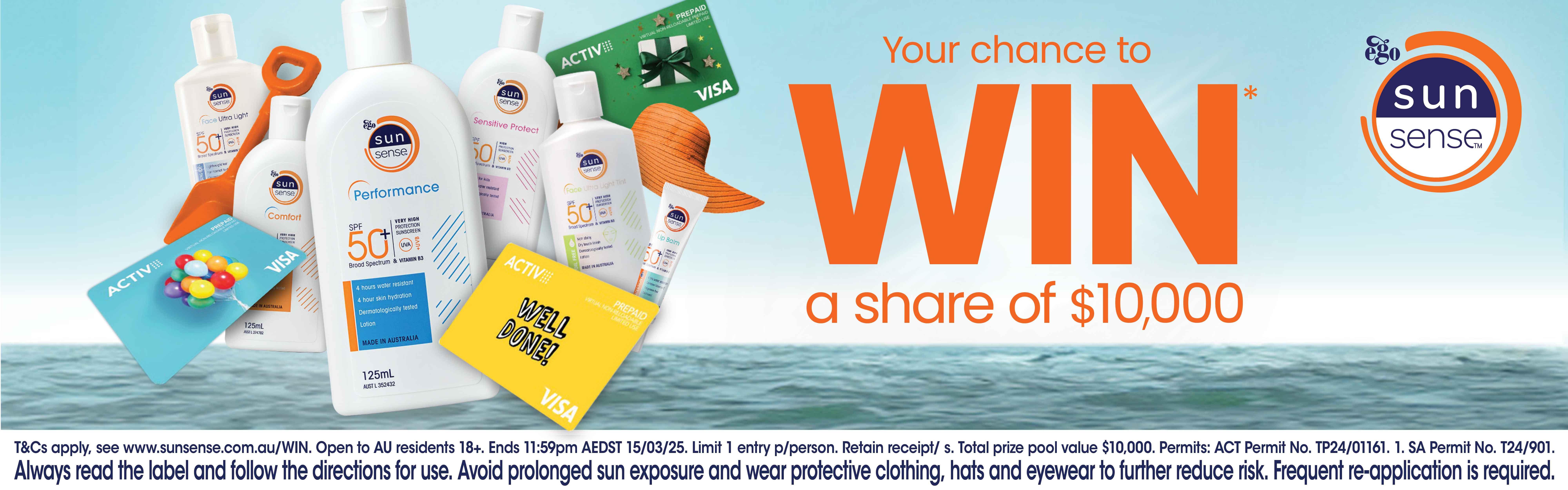Purchase any SunSense product in store and enter your details below to go in the draw to WIN