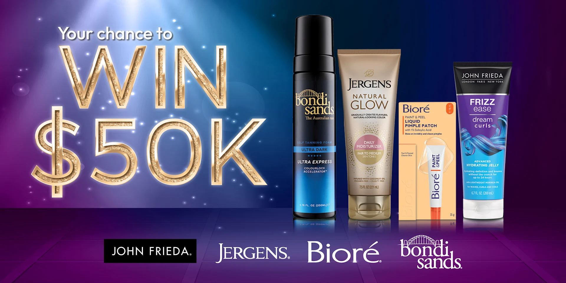Simply spend $25 or more across John Frieda, Bondi Sands or Jergens products for your chance to win.