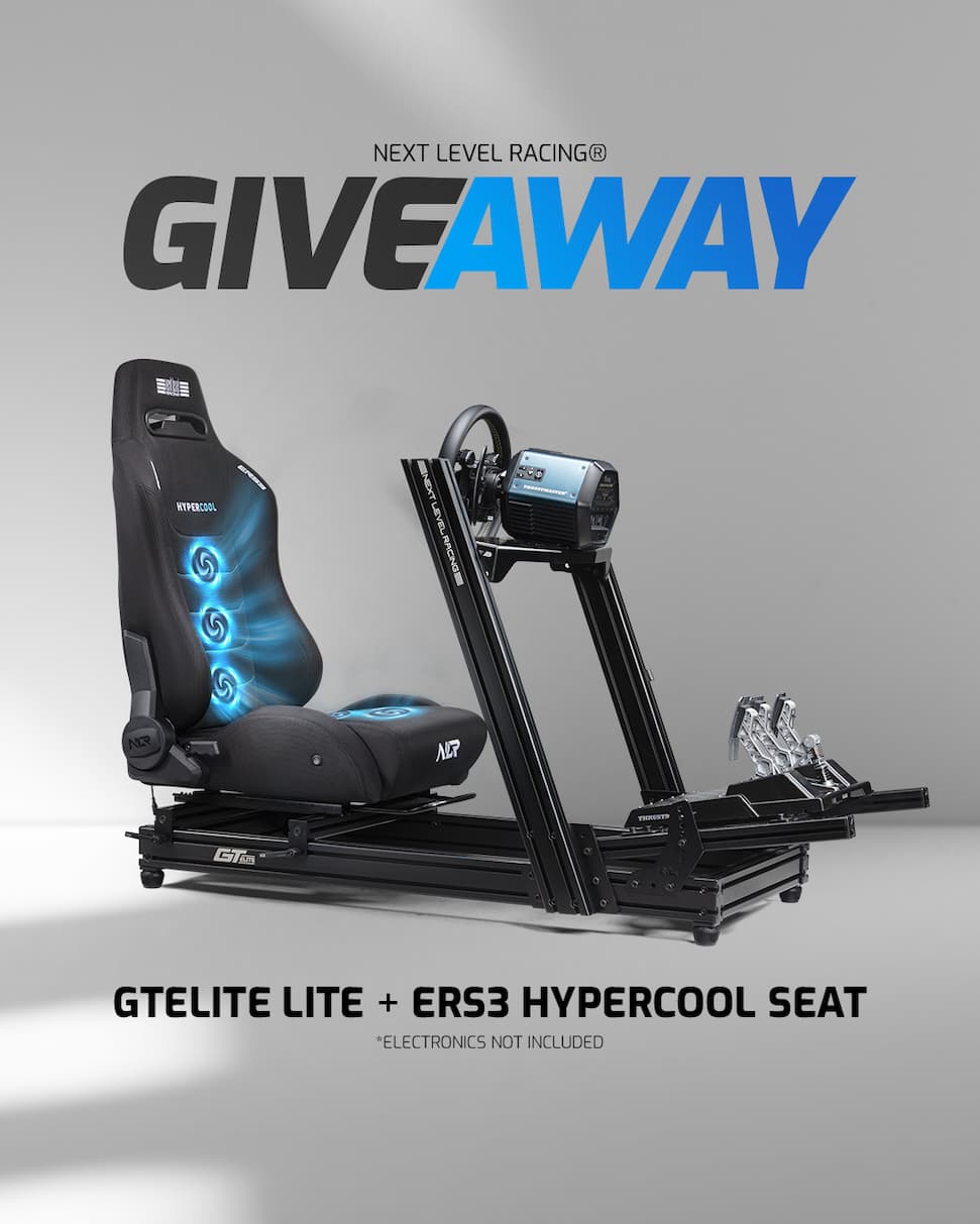 Enter your full name, email and country for your chance to win a Next Level Racing GTElite Lite Cockpit + ERS3 Hypercool Sim Racing Seat!