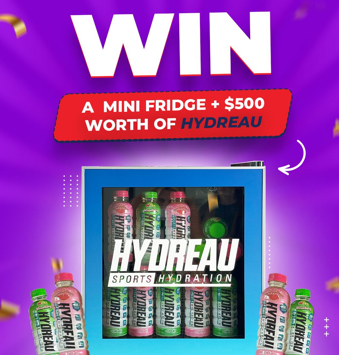 The prize consists of one EHP Labs Hydreau Mini Fridge and $500 worth of Hydreau drinks. The drinks component will be supplied as a $50 digital voucher each month for ten months, with each voucher redeemable for one case of Hydreau drinks. A free shipping code will also be provided with each monthly voucher. The prize is not transferable or exchangeable and cannot be taken as cash.