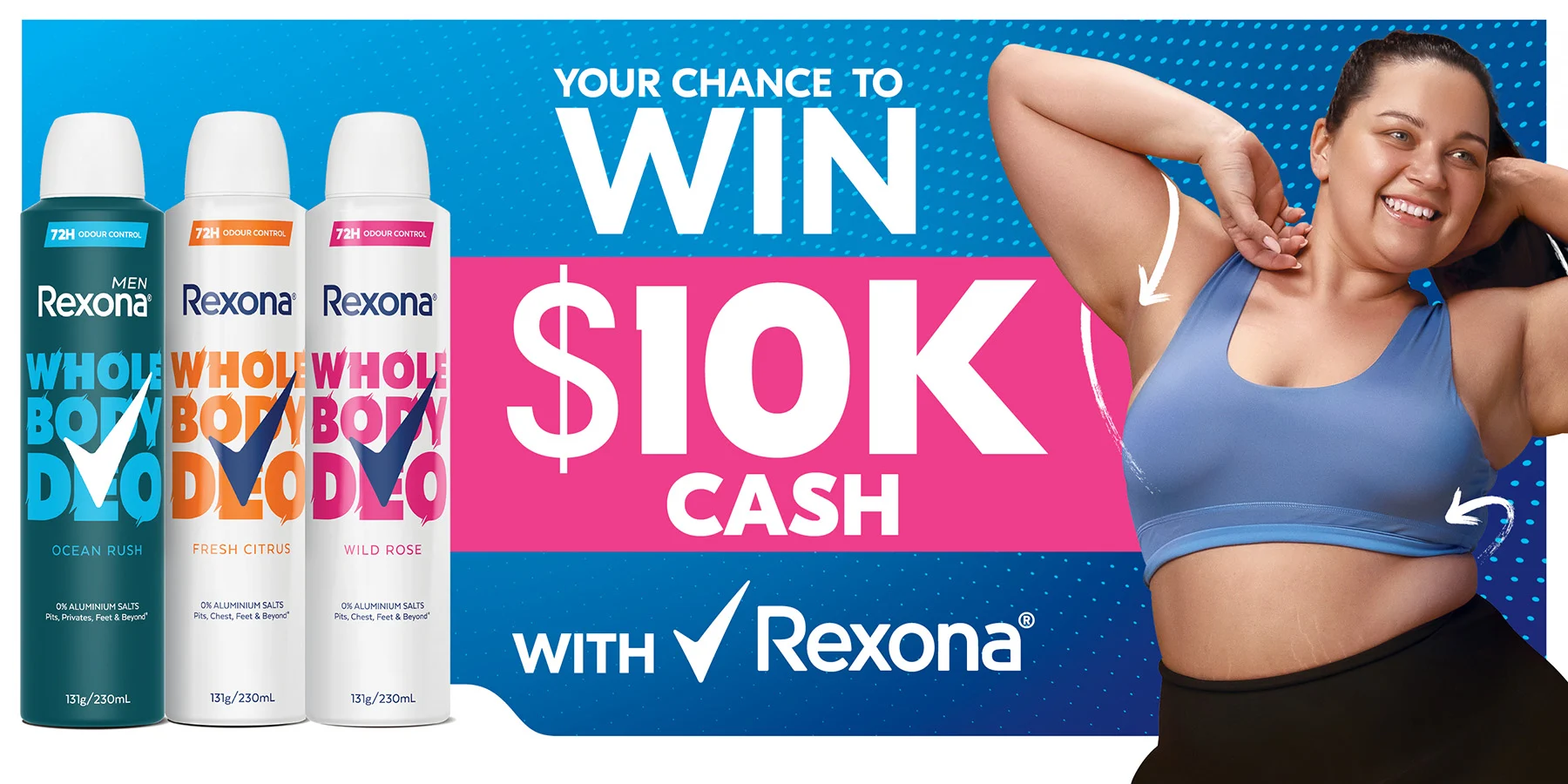 Purchase ANY two Rexona products for your chance to win $10,000!https://www.chemistwarehouse.com.au/competitions/win-10k-with-rexonaCompetition entries can be made from 00.01am AEST on 02/10/25 until 11.59pm AEST 29/10/25. AU Res 18+. Retain receipts. Max 1 entry per transaction. Max 1 entry per day. 1 or more eligible products must be purchased in 1 transaction. Drawn: 30/10/25. 1 winner will receive $10,000 AUD via EFT transfer. Total prize value: $10,000 AUD.