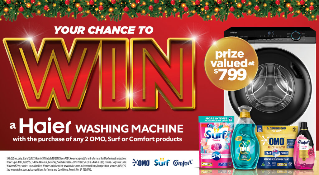 Haier washer Drakes QLD & SA Closing Date: Tuesday 09 December 2025
