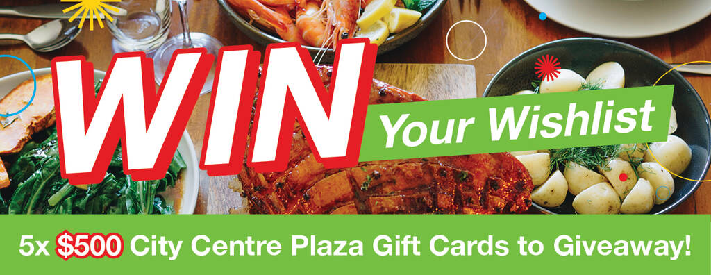 *Terms & Conditions apply. Tenants of City Centre Plaza are not eligible to enter the competition. Click HERE for full Terms and Conditions. Competition closes Thursday 11 December at 9.00am.