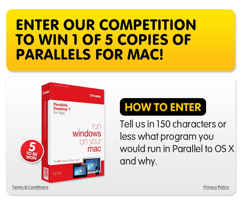 • WIN 1/5 Parallels For Mac     Closing Date: Friday 07 September 2012