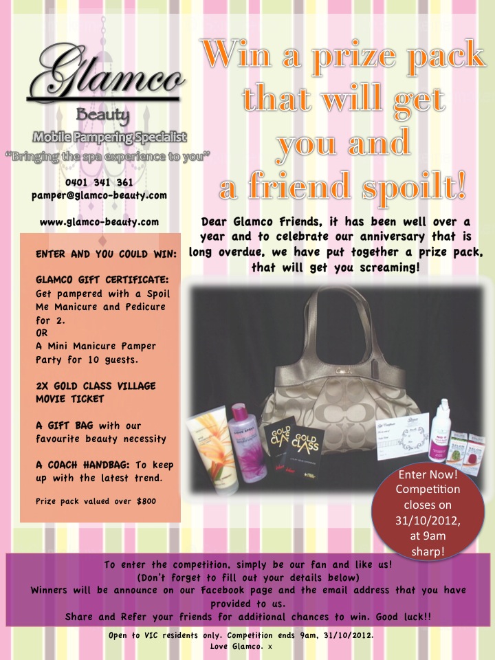 • Win Glamco Beauty Prize pack     Closing Date: Wednesday 31 October 2012