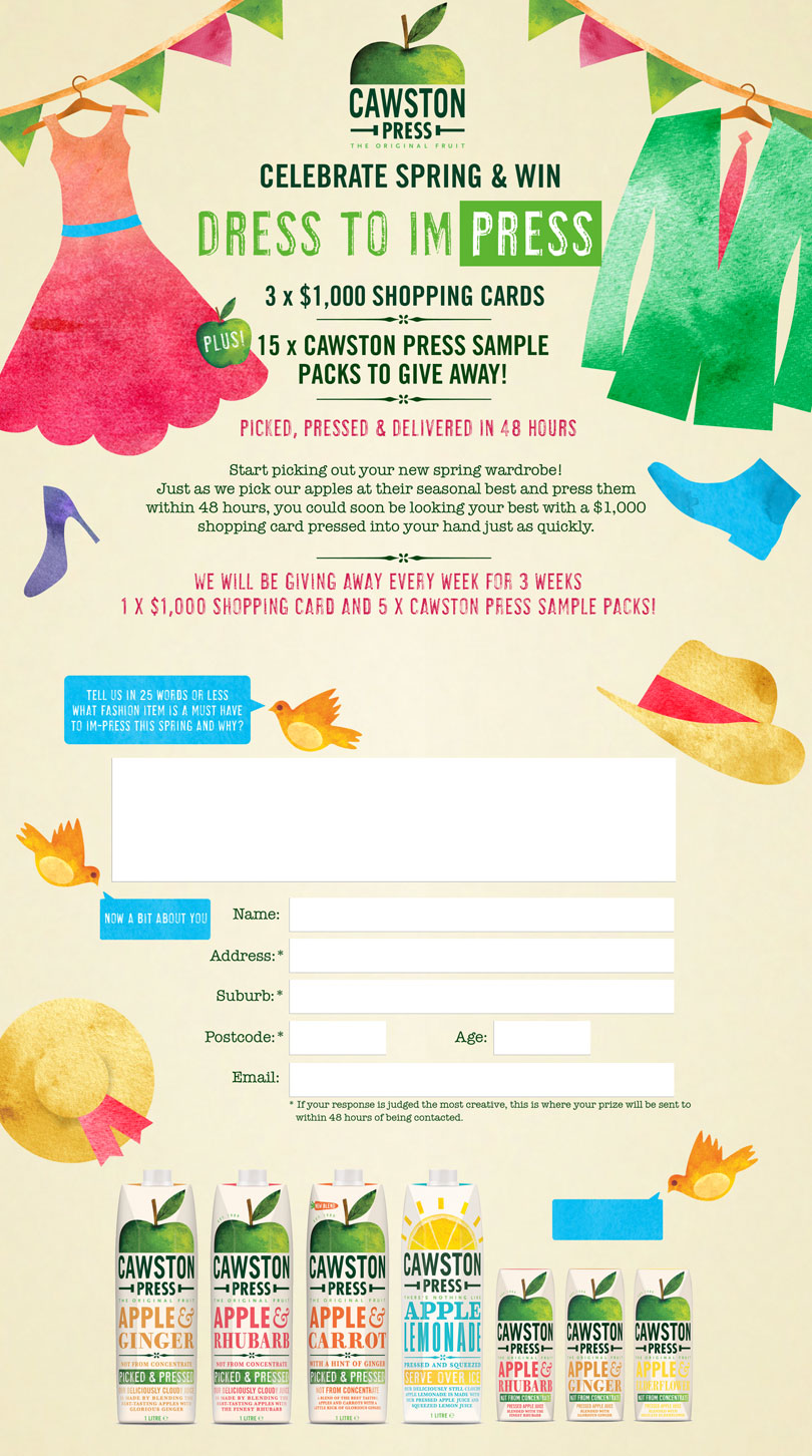 https://www.facebook.com/CawstonPressAustralia/app_197602066931325âCAWSTON PRESS SPRING SHOPPING FASHION EXPERIENCEâ PROMOTION