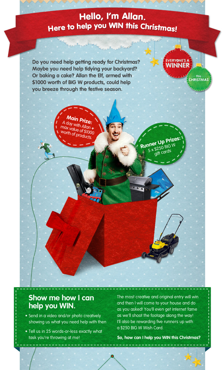 https://www.facebook.com/BIGWaustralia/app_471920119513590BIG W ALLAN THE ELF Competition - Terms & Conditions: