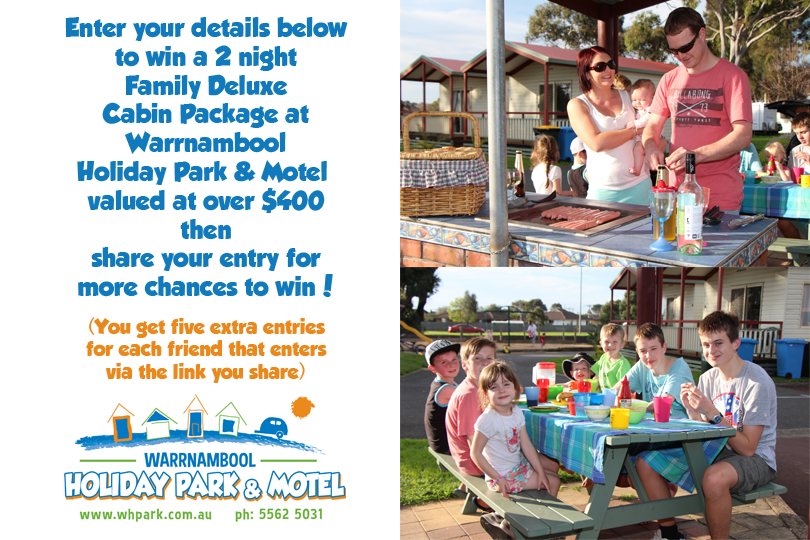 Enter your details below to go in the draw to win a Family Deluxe Cabin Package at Warrnambool Holiday Park & Motel