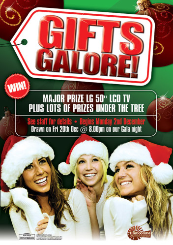Eat, drink or play your way to gifts galore. Simply by enjoying yourself anywhere in the tavern you have the opportunity to be a gifts galore winner. Make Christmas even better this year while savouring our fantastic menu, cold beverage and leisure activities